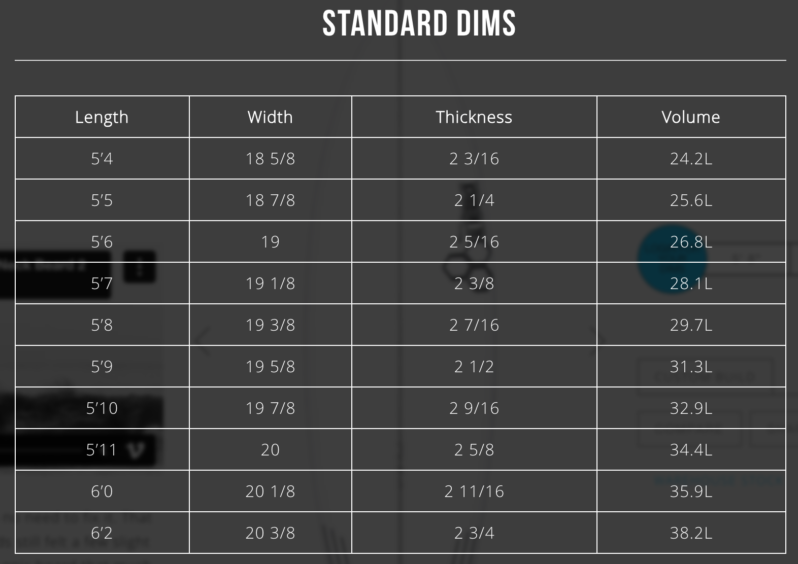 | 6’2 | 20 3/8 | 2 3/4 | 38.2L |
