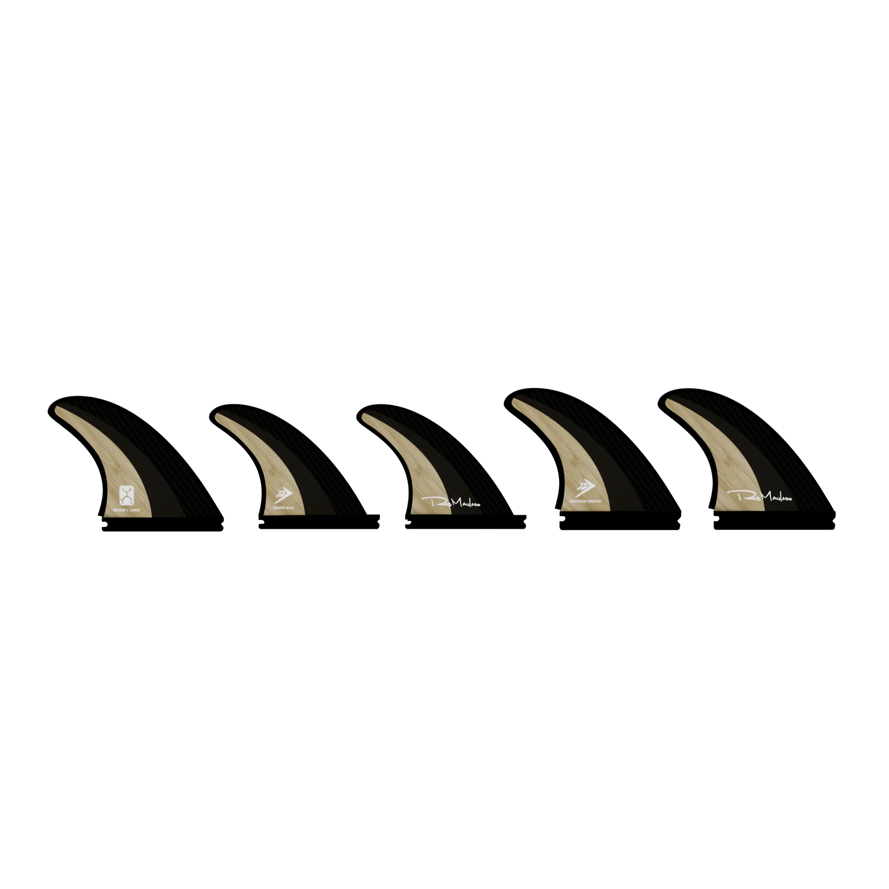 Questo set di pinne è disponibile come set da 5 pinne perché, sebbene Rob avesse originariamente progettato il Groove come un thruster, si è subito appassionato alla configurazione Quad. Viene offerto nella taglia Medium/Large in quanto è più grande della tipica Medium ma più piccola della tipica Large.