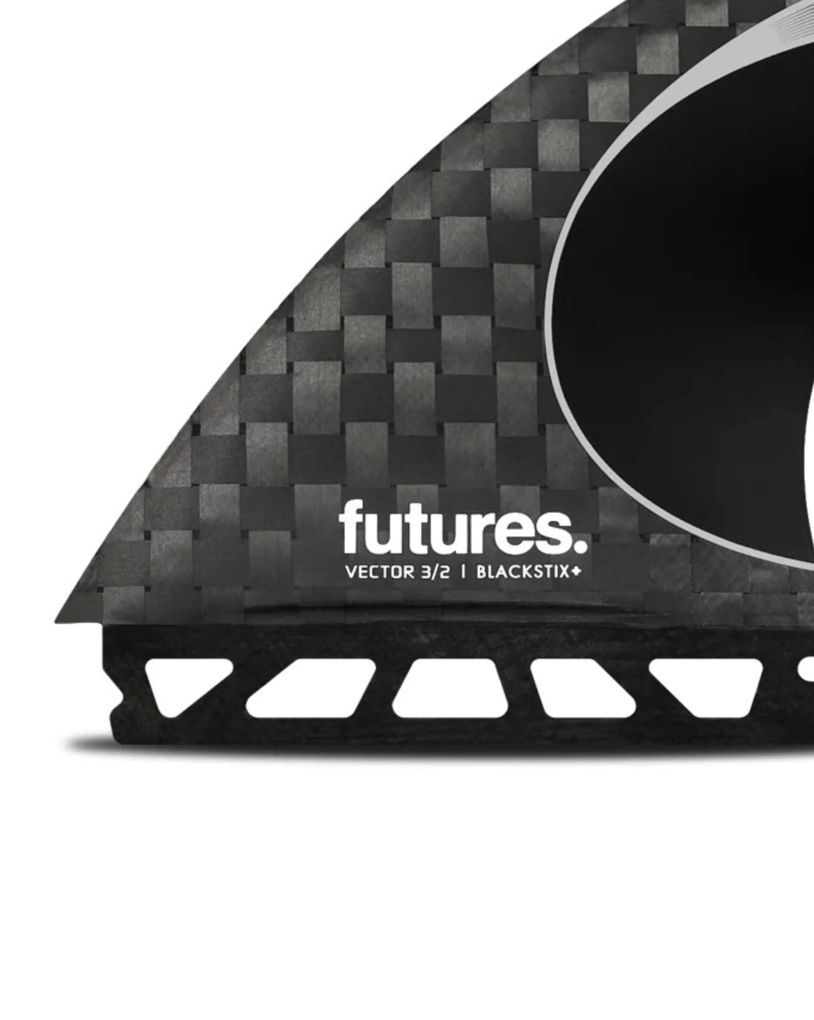 La Vector 3/2 Blackstix+ è l'evoluzione della tecnologia delle pinne ad alte prestazioni di Futures Fins, che supera la precedente Vector 3/2 in costruzione Alpha. A differenza delle tradizionali Blackstix, la Blackstix+ presenta una struttura più rigida, che garantisce che i foil della Vector 3/2 rimangano completamente agganciati durante le curve. Questa maggiore rigidità e risonanza migliorano la spinta, la tenuta e il ritorno elastico, offrendo maggiore controllo e potenza senza sacrificare la fluidità della transizione da un rail all'altro. Il risultato è una pinna che offre una sensazione precisa ma reattiva e vivace, rendendola ideale per i surfisti che desiderano migliorare le proprie prestazioni in diverse condizioni.
