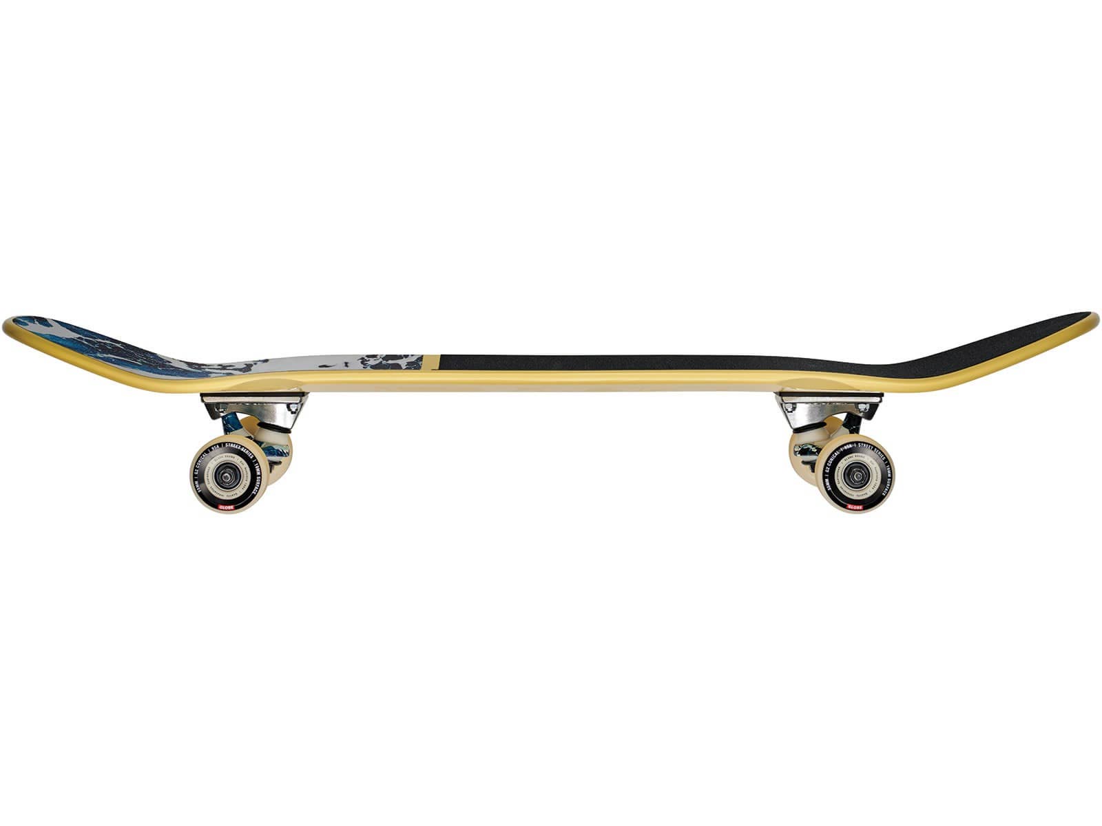 Viene fornito con griptape diviso nero e stampato, grafica con finitura opaca su tavola verniciata lucida e ganci per truck abbinati alla grafica del griptape!