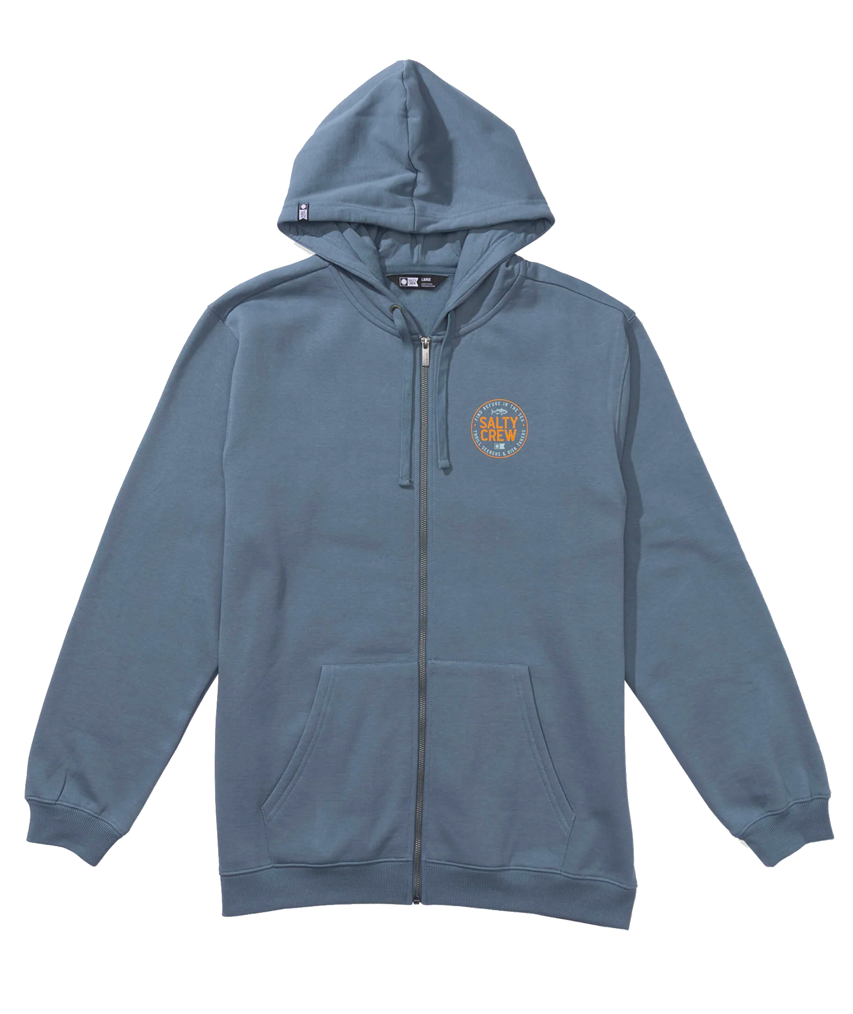 SALTY CREW LEGENDARY FELPA ZIP SLATE Felpa con cappuccio e cerniera Peso medio 8,5 Oz Tasca a marsupio con cappuccio con coulisse Fronte e retro serigrafati