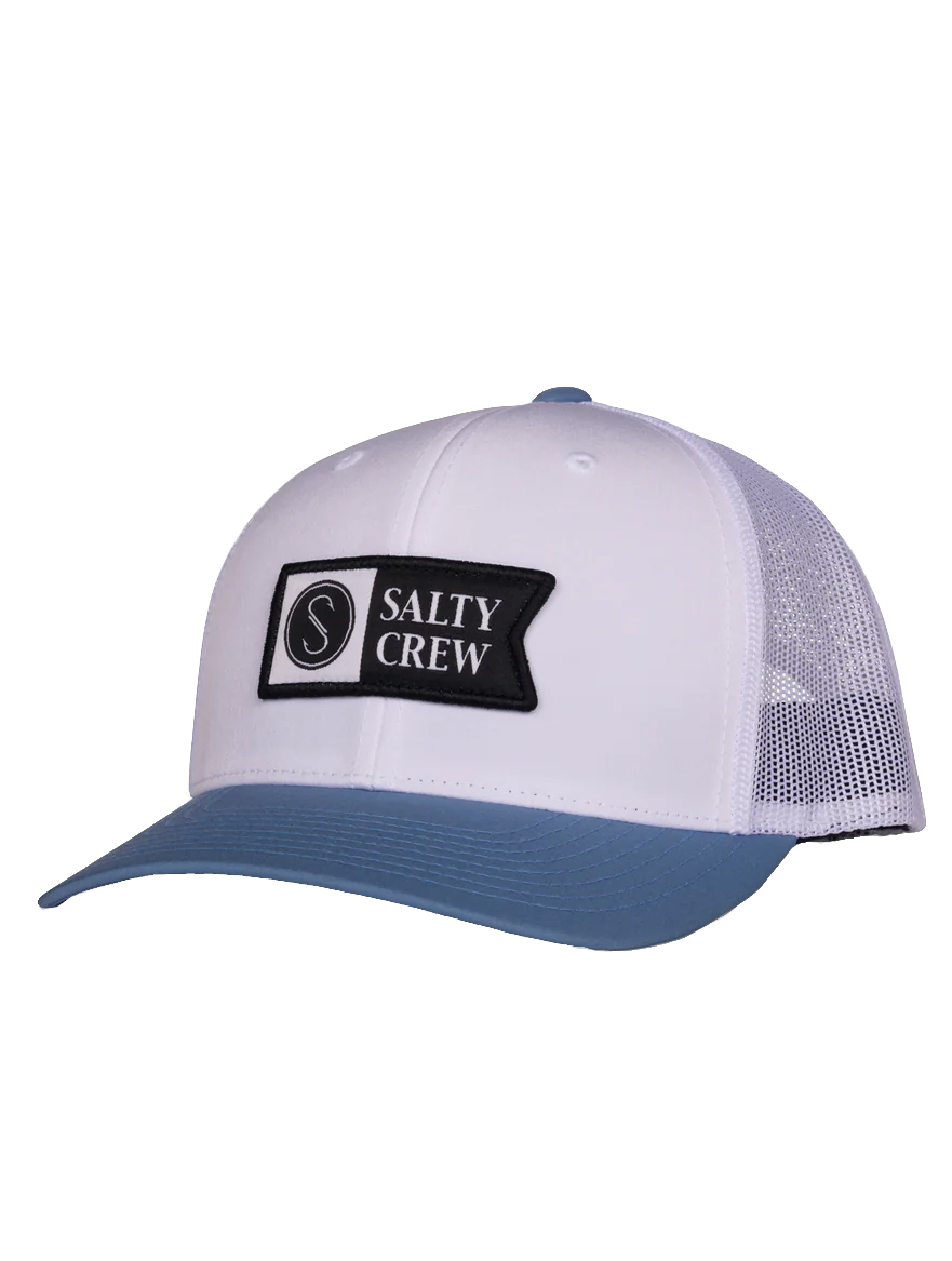 SALTY CREW PINNACLE RETRO TRUCKER CAPPELLINO WHITE SLATE Il modello Pinnacle 2 Retro Trucker - Bianco/Ardesia è pensato per la vita in acqua e fuori, e rispecchia la tradizione costiera e l'impegno di Salty Crew per le prestazioni quotidiane.