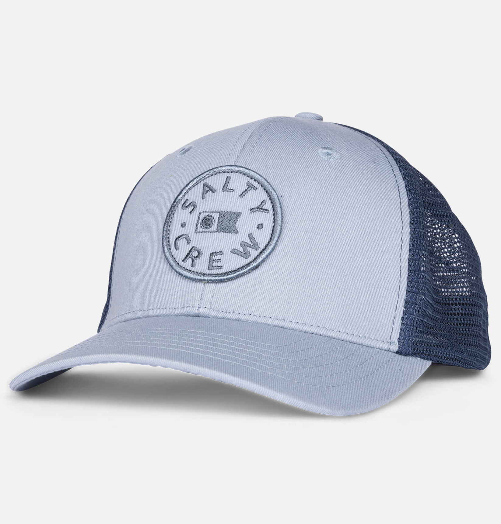 SALTY CREW WATERMARK RETRO TRUCKER BLUE FOG CAPPELLINO 100% twill di cotone Strutturato a 6 pannelli, altezza media della corona Toppa ricamata in twill Snapback in plastica