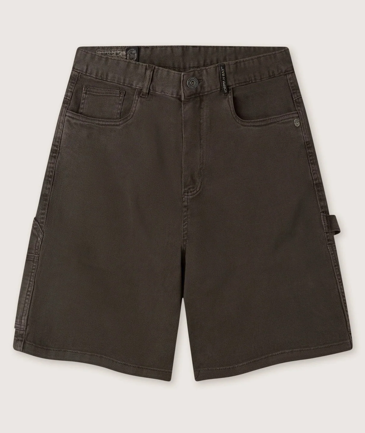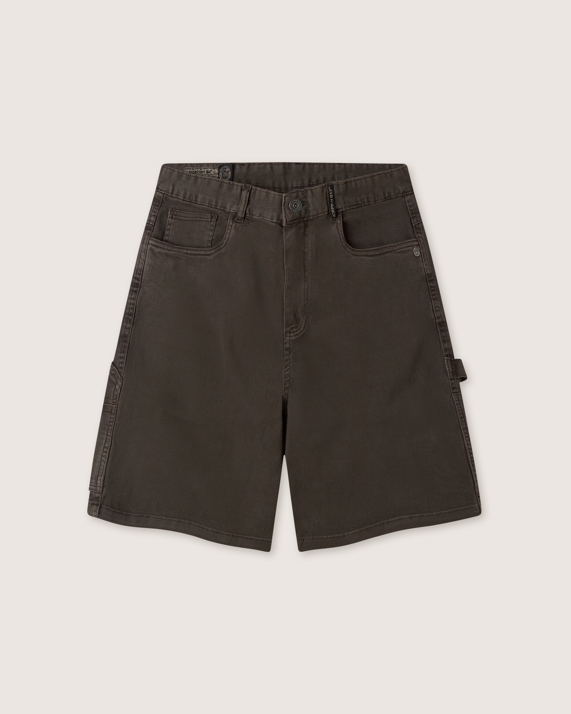 Bermuda carpenter oversize uomo color marrone espresso. Chiusura classica, tasconi carpenter applicati sui fianchi e doppia tasca sul retro. Effetto vintage dato dal lavaggio.