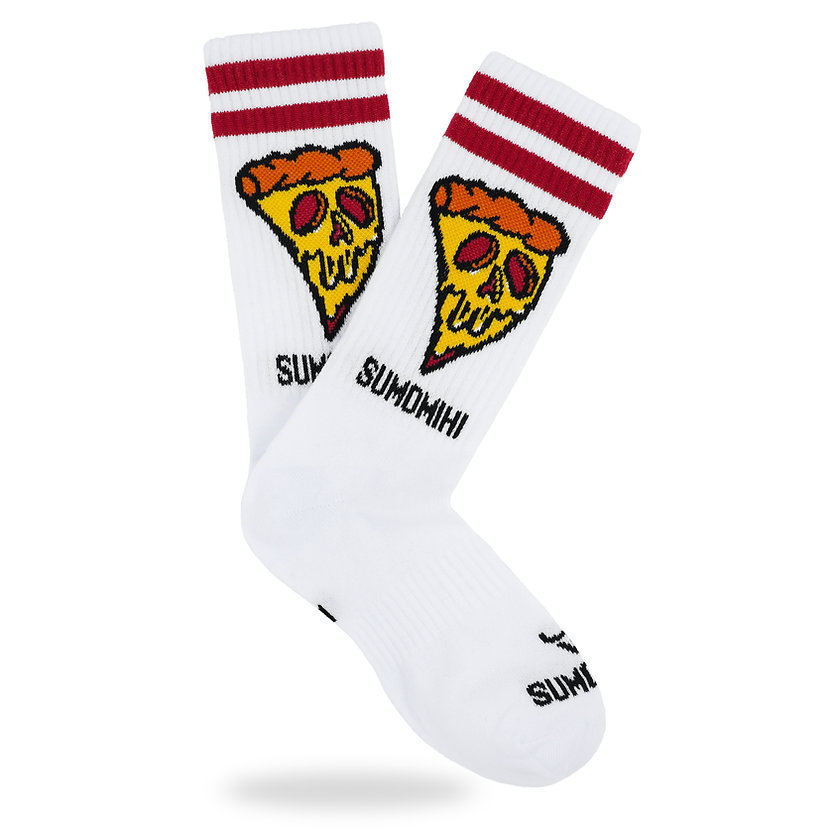 Calzini SUMOMIHI media lunghezza in morbido cotone. Colore bianco, trancio di pizza laterale, tessitura Jacquard. Made in Italy