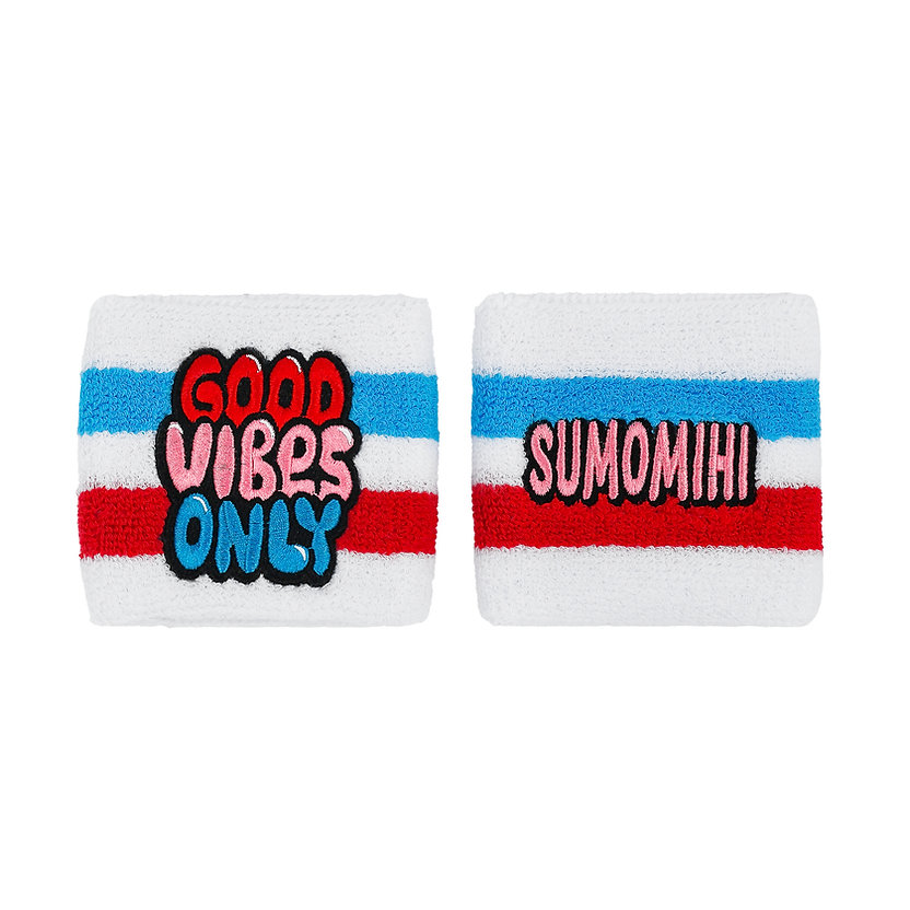 Polsino SUMOMIHI in spugna. Colore bianco, scritta Good Vibes Only frontale, scritta "SUMOMIHI" posteriore.